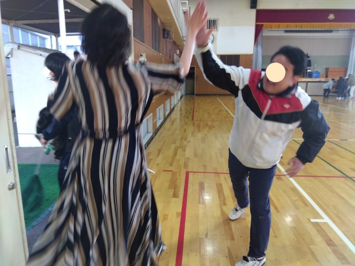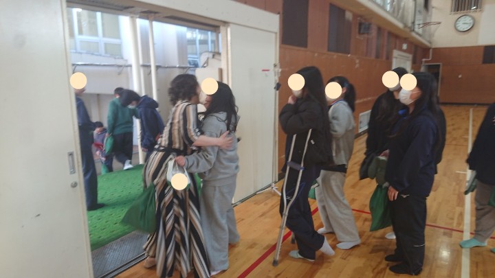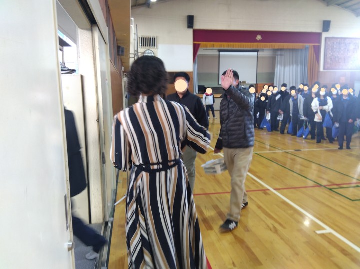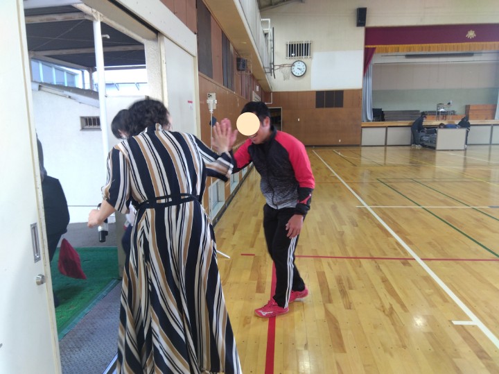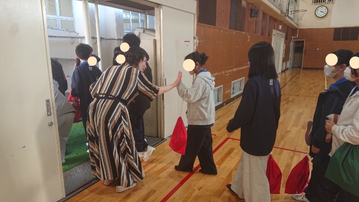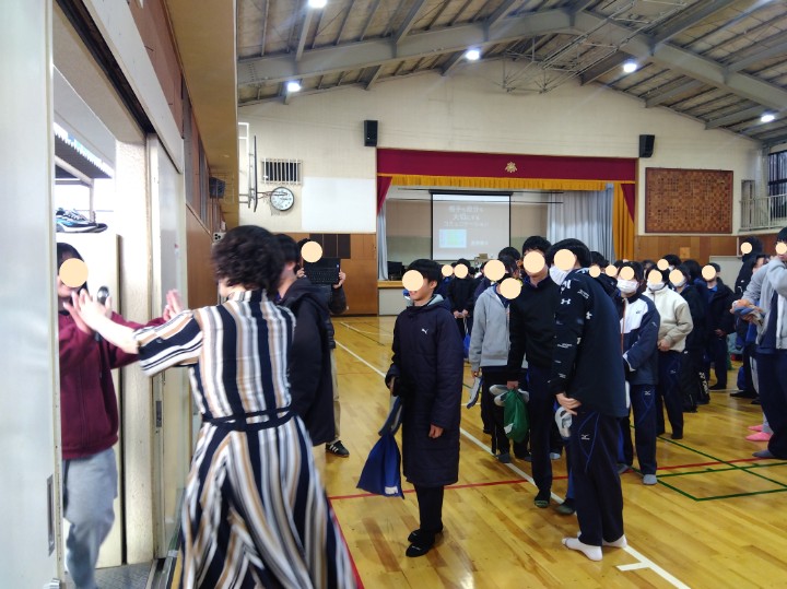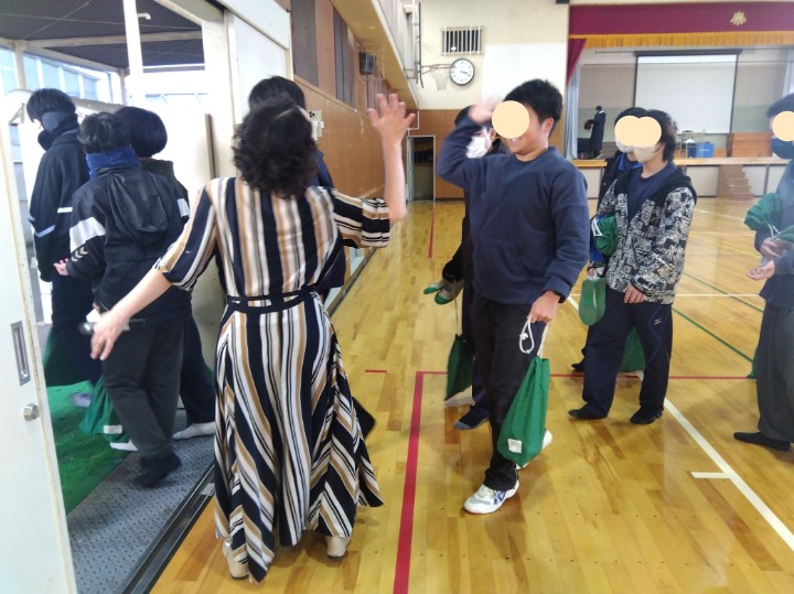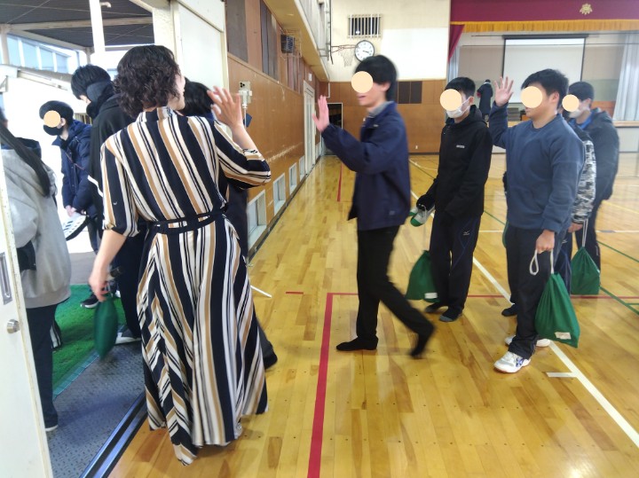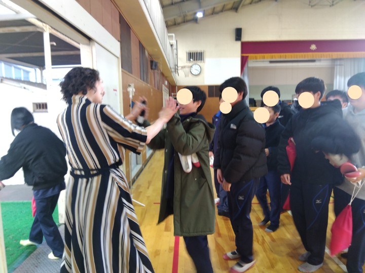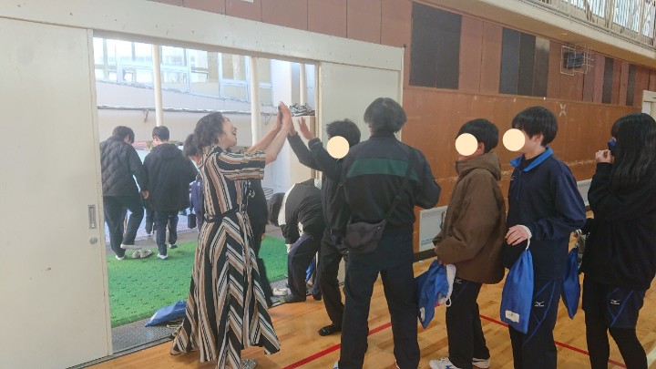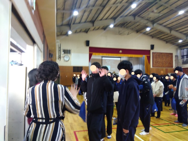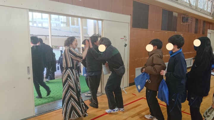 講演が終わって生徒たちが教室に戻る時には出口でハイタッチ✋️