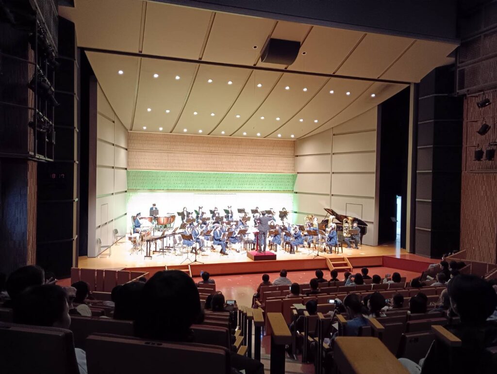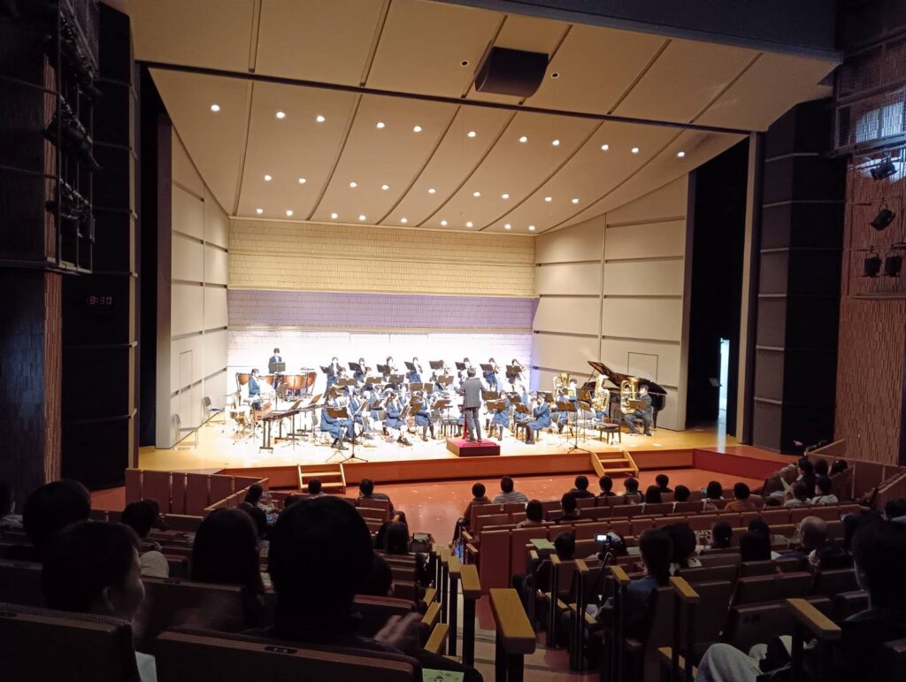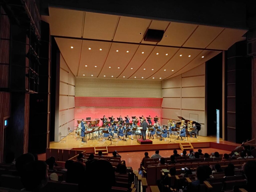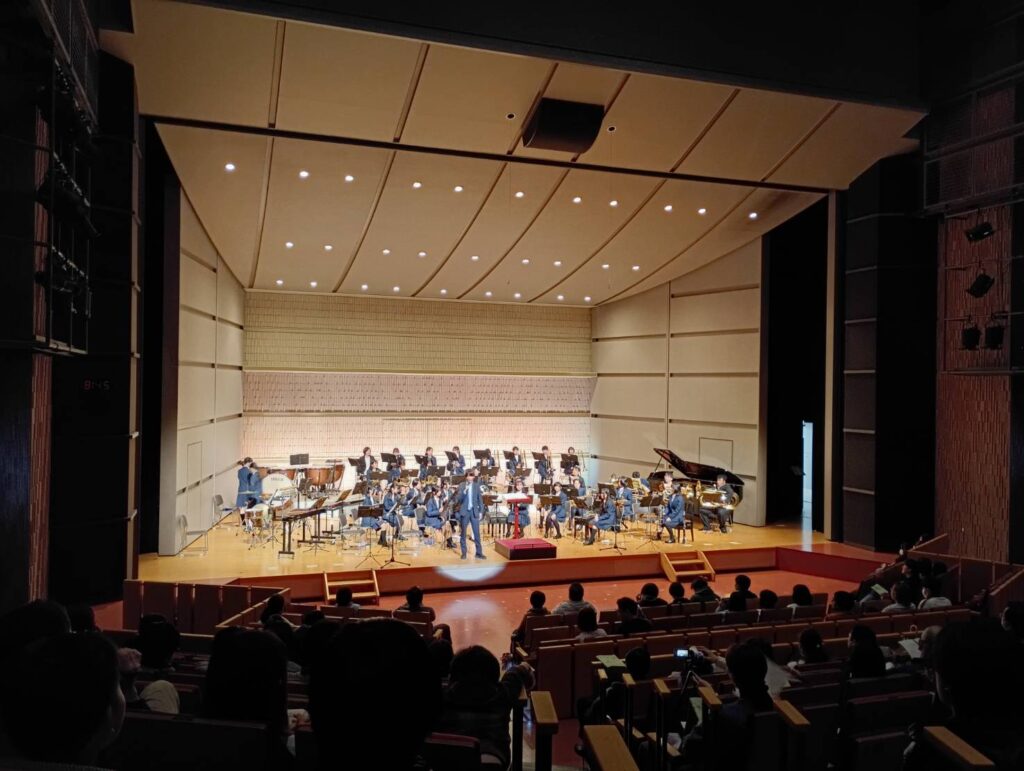1年間の締めくくりである終了式が終わり、慌ただしく瀬谷公会堂に移動した吹奏楽部が演奏を披露しました。